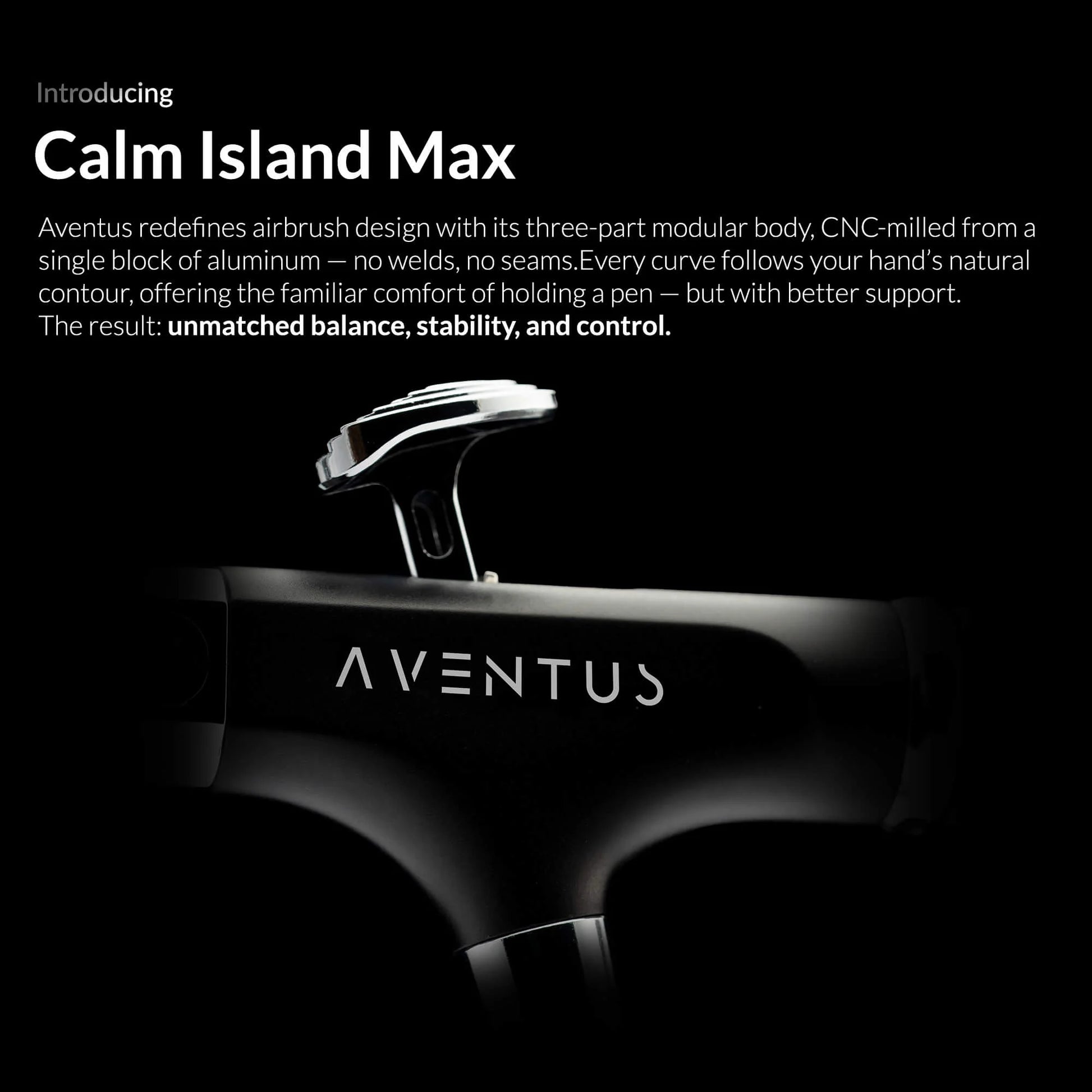 Aventus is a complete reinvention of the airbrush. Every internal part, every ergonomic curve, and every functional detail has been redesigned to deliver smoother control, cleaner atomization, and unmatched precision.