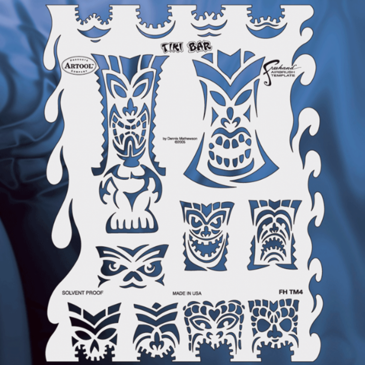 The Artool Freehand Templates are a real asset to anyone who uses an airbrush. Delineate shapes by matching the contours of the Freehand Airbrush Templates with the subject matter. Simply rotate or flip flop these templates to find the shape which works best for a hard edge, or raise the template slightly to create a soft - edge contour.
