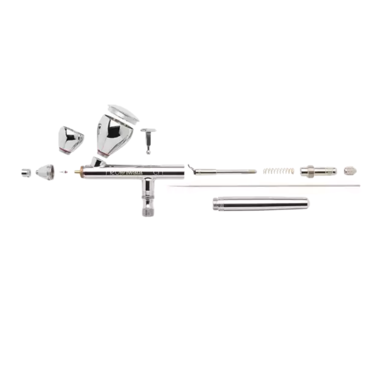 NEO CN Gravity Feed Dual Action airbrush has a detachable 0.24 oz / 7 ml fluid cup with lid that is large enough for color mixing and an additional 0.10 oz / 3 ml color cup that is ideal when using small amounts of spray medium. Fine atomization is achieved with the smallest air compressors, making NEO an affordable option for general purpose spraying and for anyone wanting to airbrush for the first time.