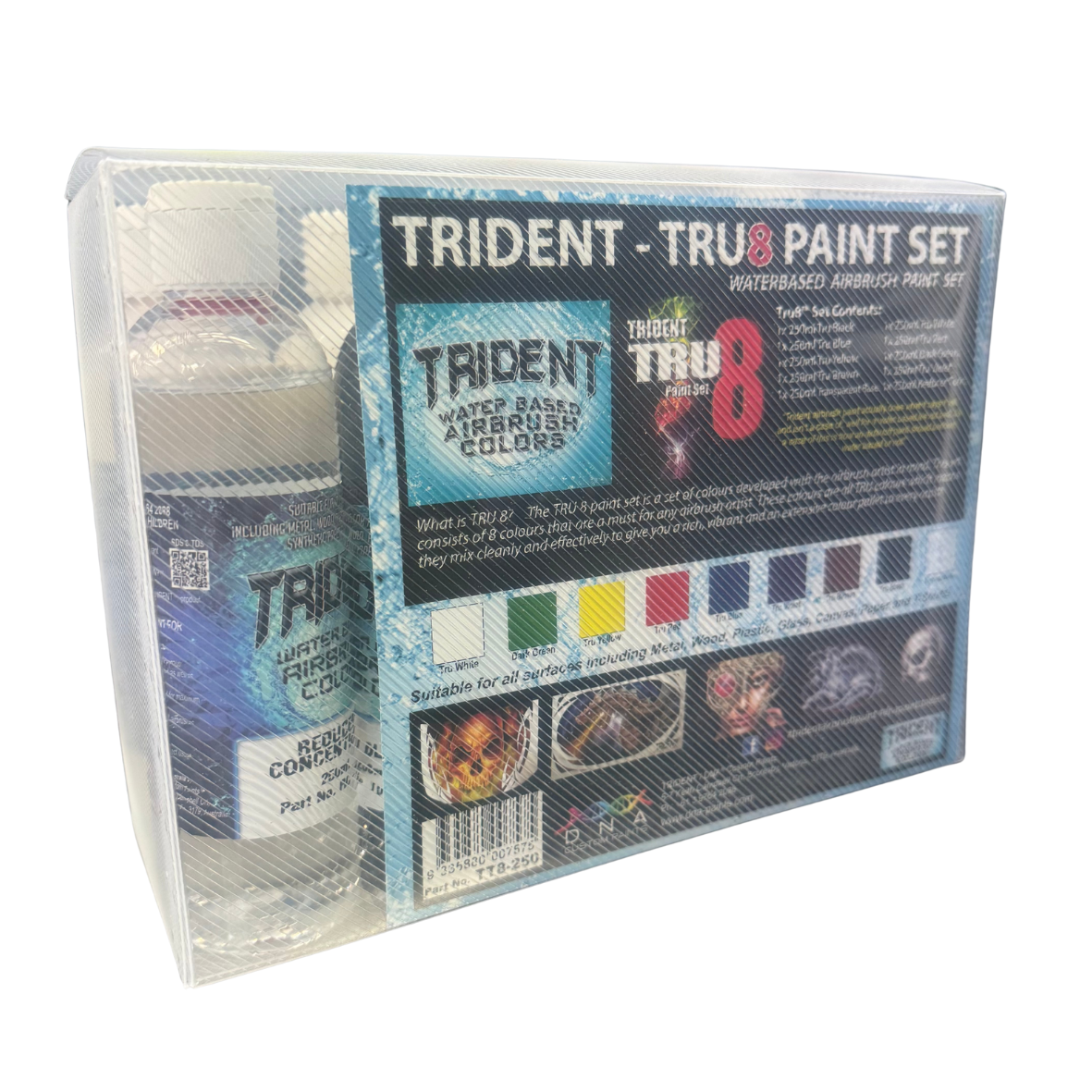 TRIDENT is a revolutionary new water based airbrush paint that provides premium performance and results. It was designed with the highest expectations, and is a joy to paint with. With current standards of other water based paint being unacceptable, TRIDENT water based airbrush paint was designed to paint as well as any top performing urethane; and it does!